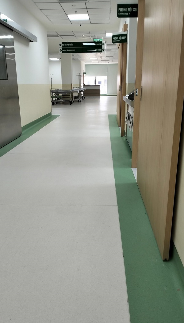 - Vật liệu chính hãng: Sử dụng sàn vinyl nhập khẩu từ các thương hiệu uy tín như Gerflor, Armstrong, LG Hausys… có đầy đủ chứng nhận chất lượng và khả năng kháng khuẩn đạt tiêu chuẩn quốc tế.